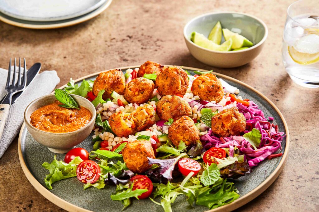 A vibrant twist on the classic falafel, these golden bites blend chickpeas with a naturally sweet and spiced blend of sweet potato, carrot, chickpeas and apricots with coriander leaf for a soft, satisfying texture and earthy flavour. • Sweet potato adds natural sweetness and boosts nutritional value • Falafels are a top-performing item in plant-based and flexitarian menus (Lumina) • Nutritious, convenient ‘bowls’ that be calibrated to dietary goals are trending (thefoodpeople) Serving suggestions: layer into flatbreads with pickled red cabbage and garlic sauce, toss into grain bowls with avocado and lemon tahini, or serve warm with couscous and harissa yogurt. Cases Per Layer:
