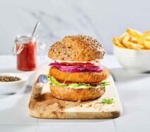Pre-fried burger made with a blend of kidney beans, sweetcorn, green peppers and spiced with cumin, chilli and oregano in a crispy crumb coating. • Holds shape and texture well across cooking methods • Bold flavour profile adds variety and a twist on classic vegetarian offerings • The veggie burger market is projected to grow at 8.1% CAGR from 2025 to 2035 (Future Market Insights) Serving suggestions: serve in burger buns with guacamole and chipotle mayo, layer into wraps with crunchy slaw and salsa, or pair with rice and grilled corn for a vibrant, Tex-Mex-style plate. Cases Per Layer: